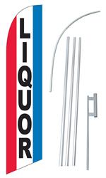 Liquor Red White Blue Swooper/Feather Flag + Pole + Ground Spike