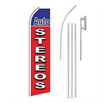 Auto Stereo Red/Blue Swooper/Feather Flag + Pole + Ground Spike