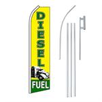 Diesel Fuel Yellow/Green Swooper/Feather Flag + Pole + Ground Spike