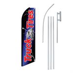 Truck Tires Red/Blue Swooper/Feather Flag + Pole + Ground Spike