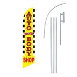 Auto Body Shop Yellow/Red Swooper/Feather Flag + Pole + Ground Spike